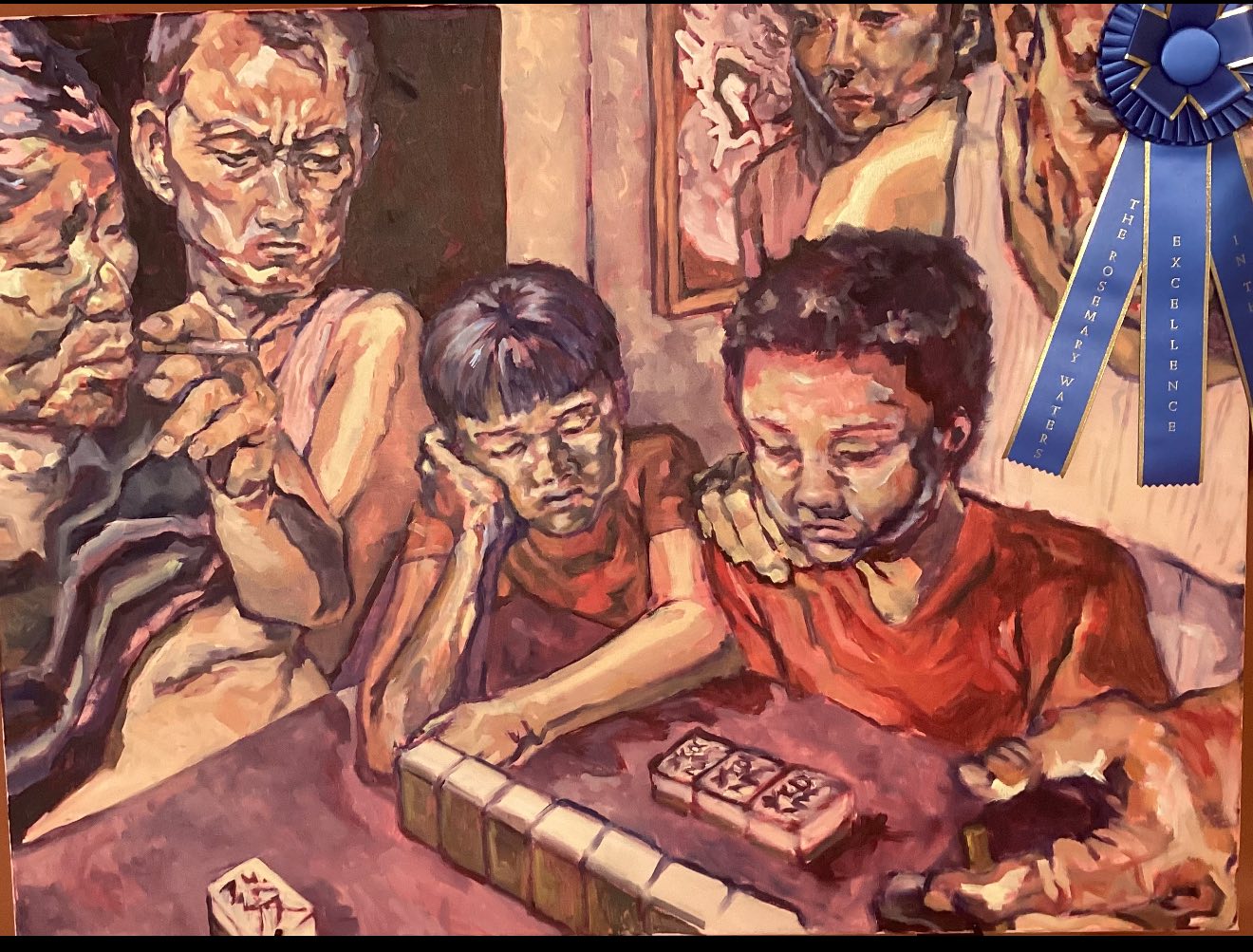 Ella Guo (CHS) – oil painting, “Family Mahjong”